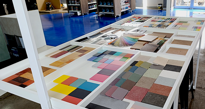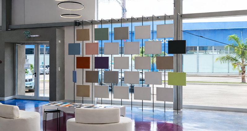 Un espacio de trabajo donde el cliente, junto a arquitectos y profesionales, puede probar, analizar y definir color, materiales y terminaciones antes de la obra, con asesoramiento especializado.